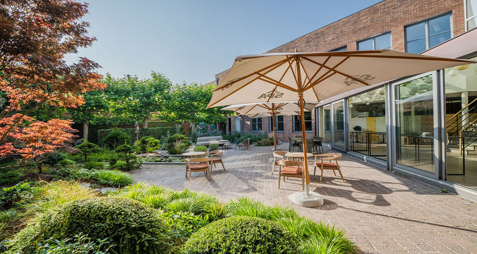 Connexion au jardin adjacent et aux espaces de réunion